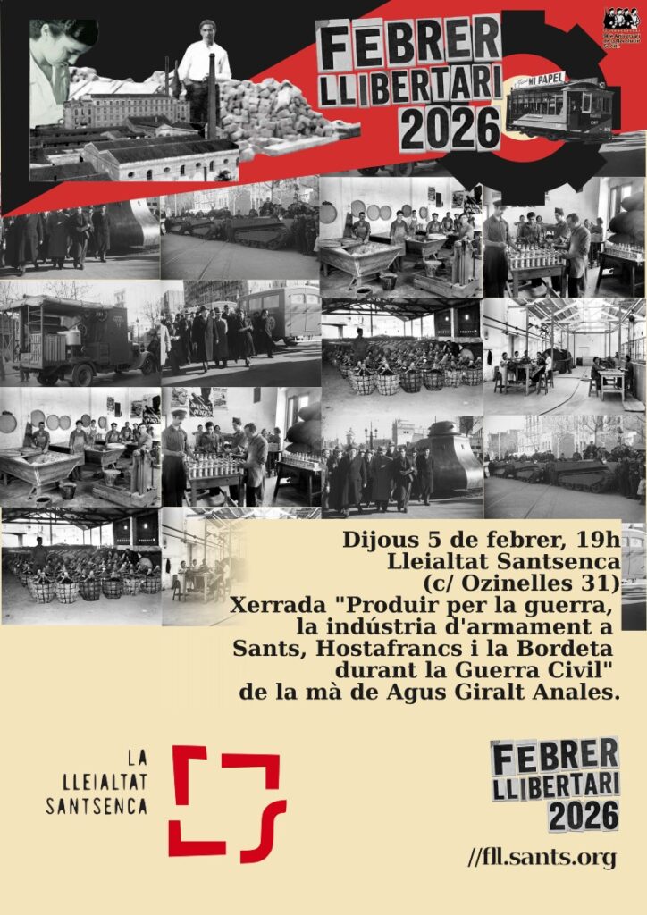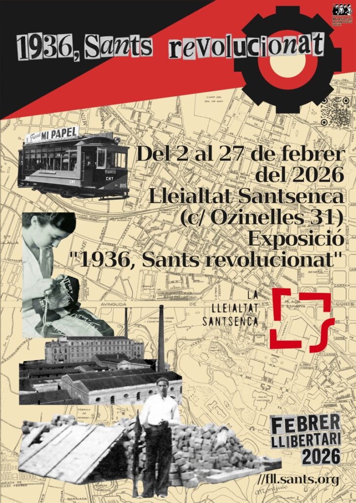 Torna el Febrer Llibertari a Sants, un mes ple de memòria, cultura i debat. Rutes històriques, xerrades i activitats per mantenir viva la flama i celebrar els 90 anys de la Revolució Social.